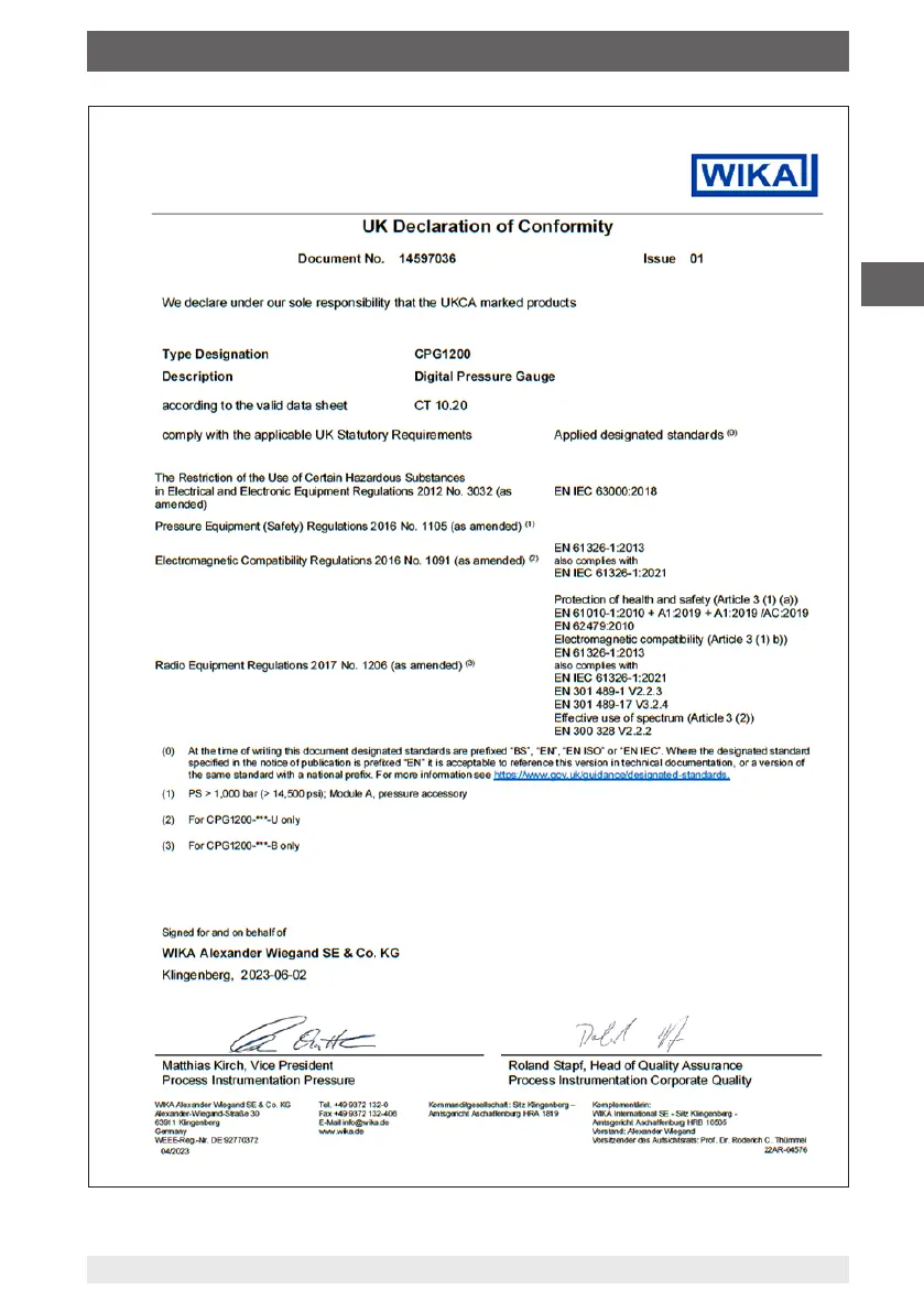 WIKA CPG1200 - Anlage 2: UK-Konformitätserklärung