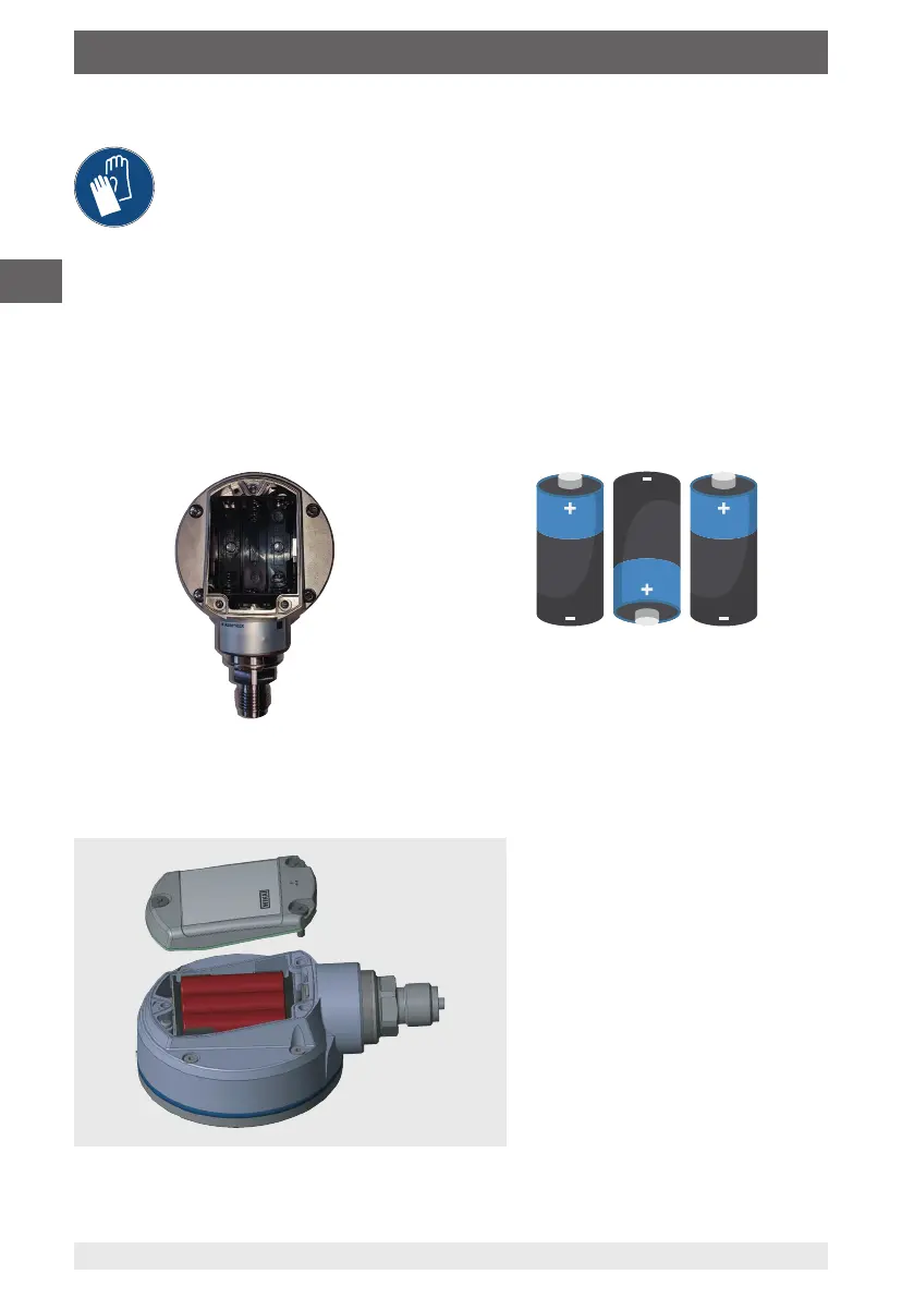 Darauf achten, dass die Polung (+) bzw. (-) auf den Batterien mit den Markierun-