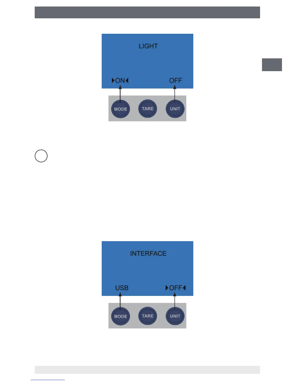 In the "LIGHT" FUNC menu item, the backlighting can be switched on via the MODE key