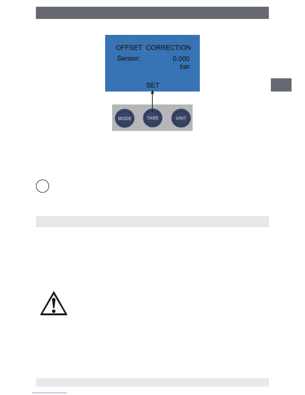 CORRECTION" bei Überdrucksensoren durch Drücken der TARE-Taste korrigiert
