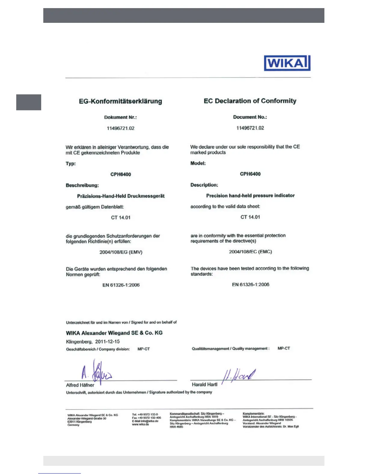 WIKA CPH6400 - Anlage 1: EG-Konformitätserklärung Typ CPH6400