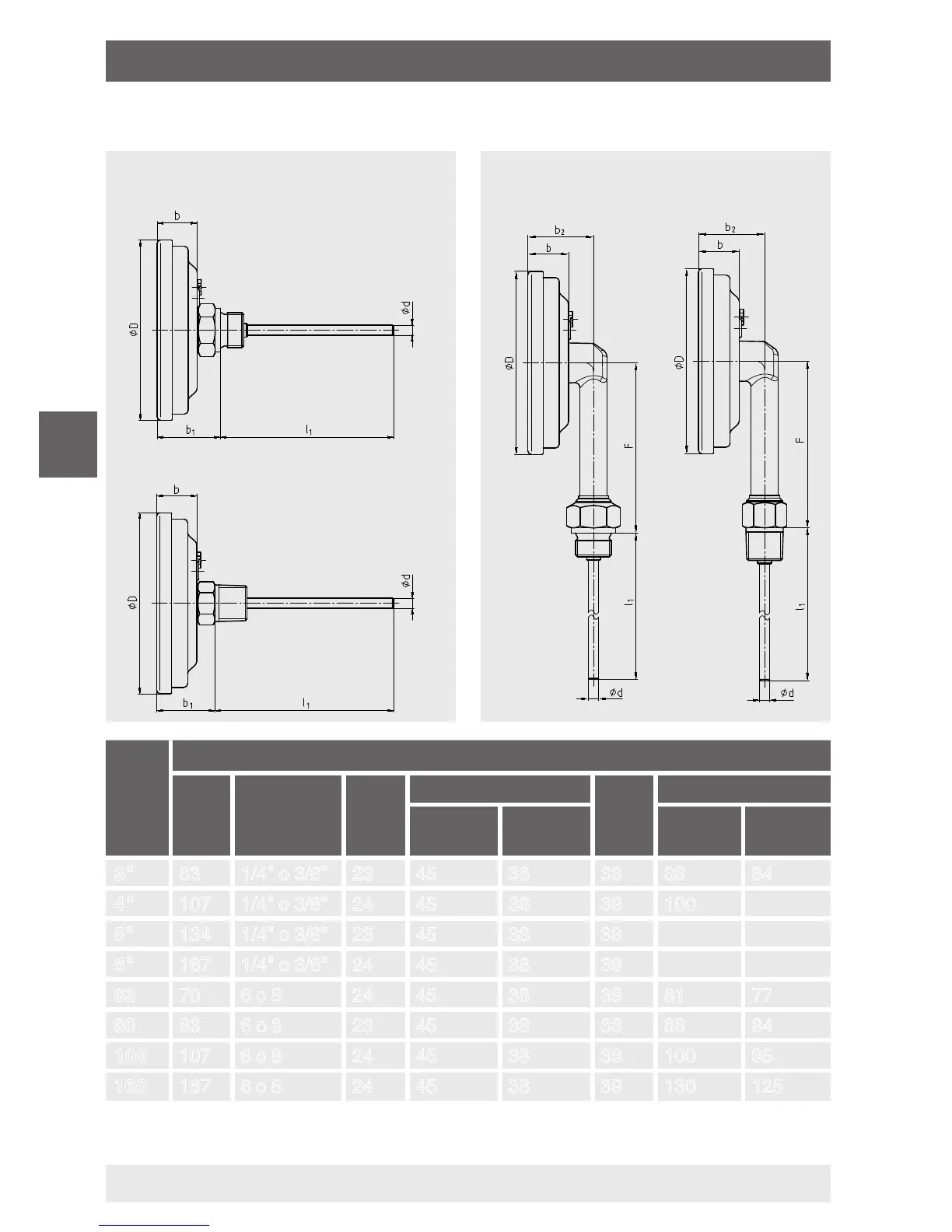 1) Las medidas aumentan en 40 mm con rangos de indicación ≥ 0 ... 300 °C