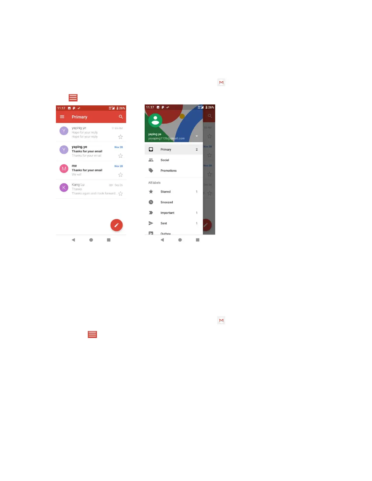 If you have more than one Gmail account set up, you can switch between them in the Gmail