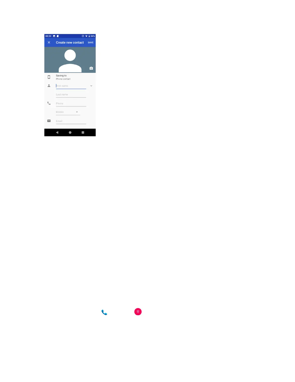 2. Enter a phone number and tap Create new contact to add a new contact or tap Add to a