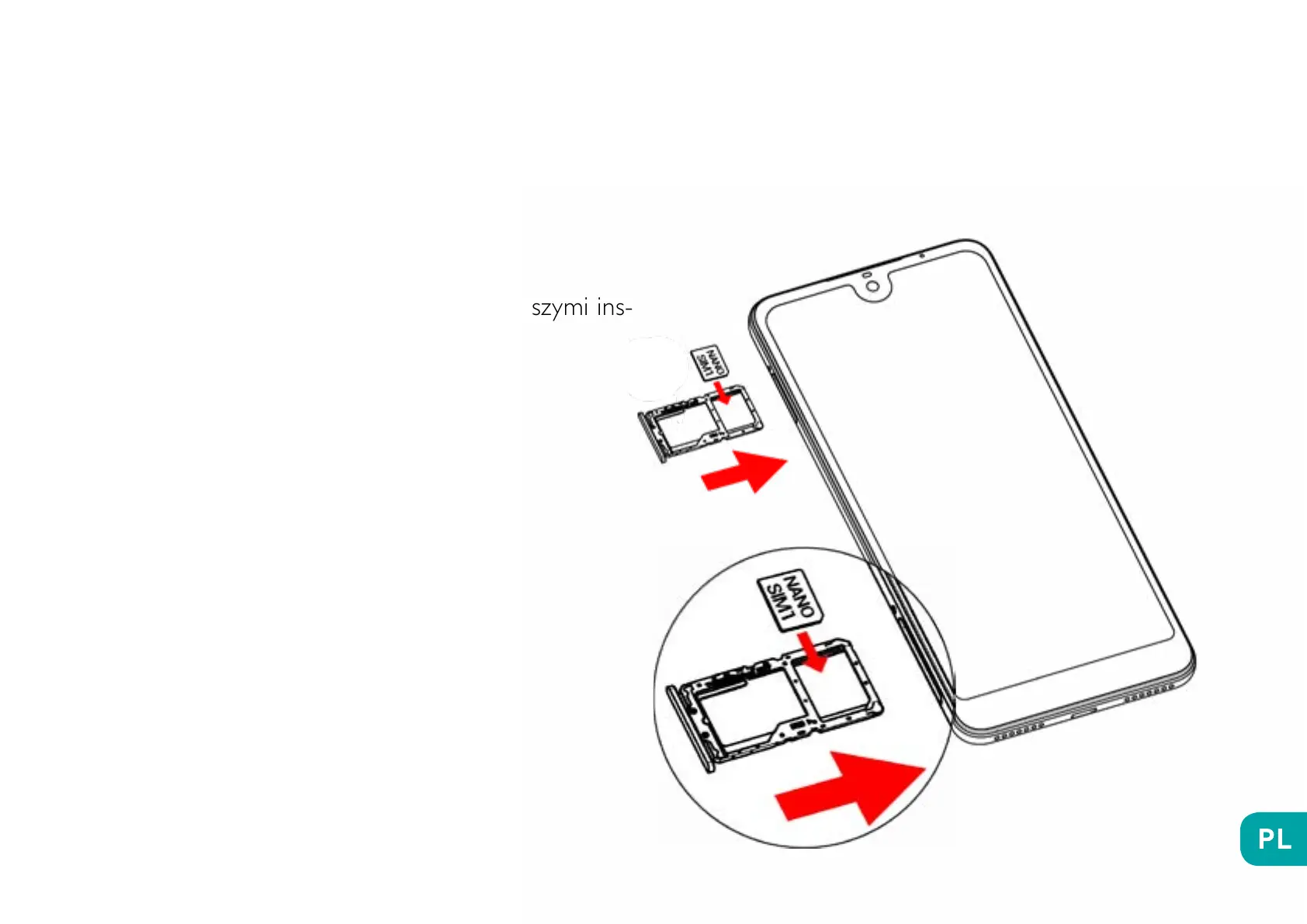 Włóż karta SIM postępując zgodnie z poniższymi ins-