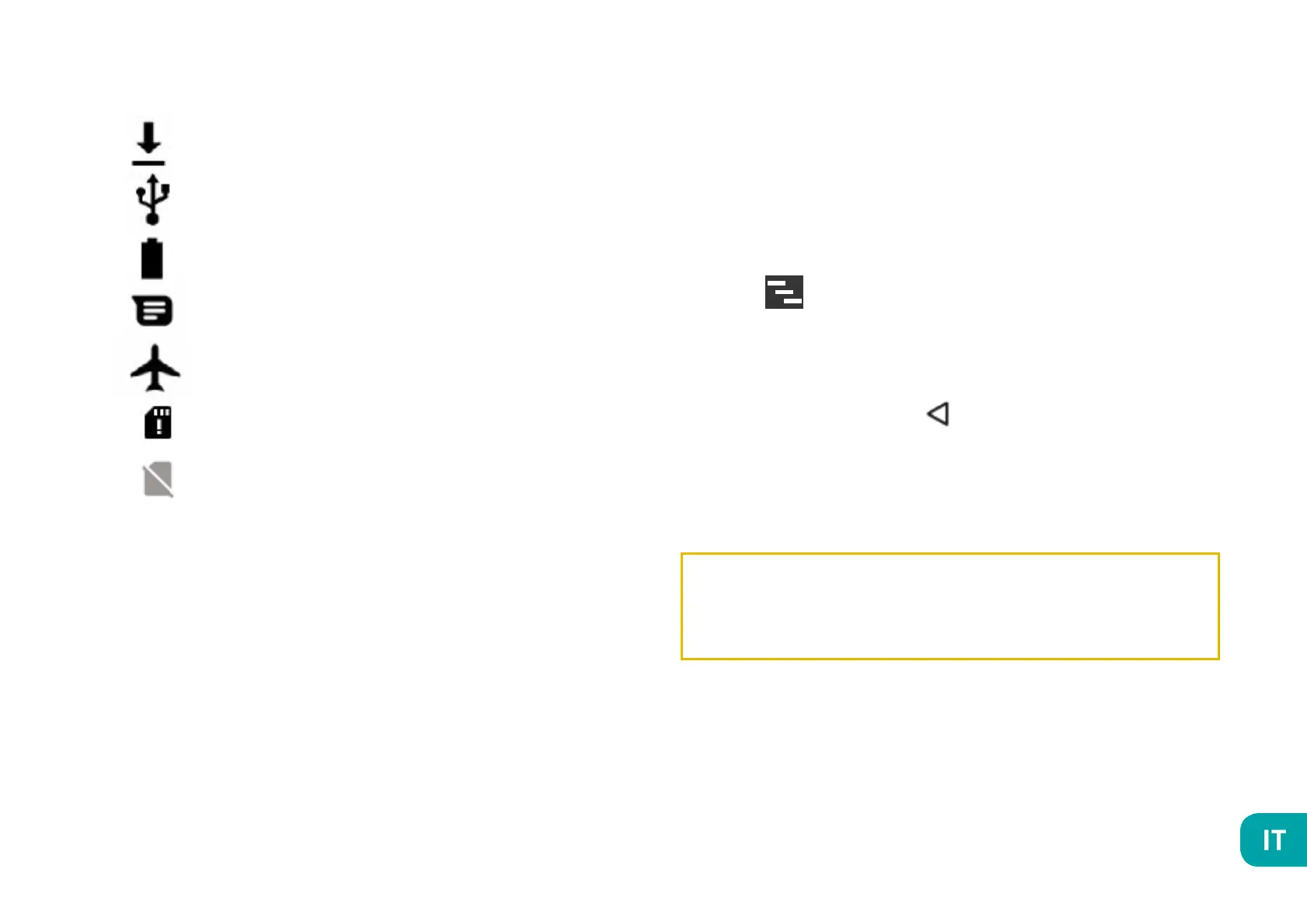 premere il tasto Indietro