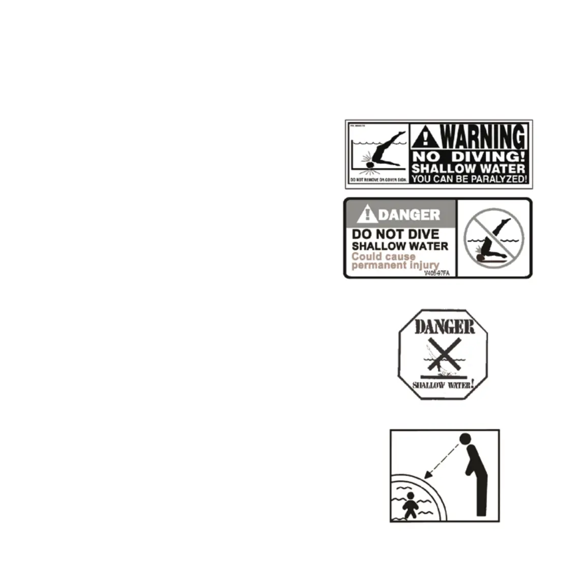 PLACE SIGNS ON LINER ABOVE WATER LINE,