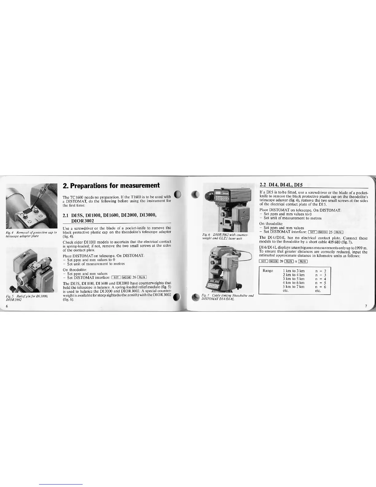 Wild T1600 - Preparations for measurement; DI5 S, DI1000, DI1600, DI2000, DI3000, DIOR 3002; DI4, DI4 L, DI5