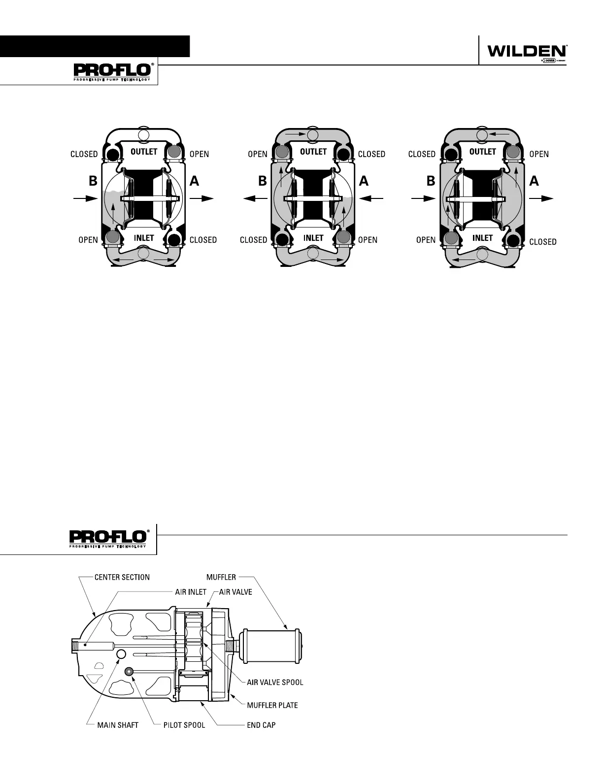 The Wilden diaphragm pump is an air-operated, positive displacement, self-priming pump. These drawings show fl ow pattern