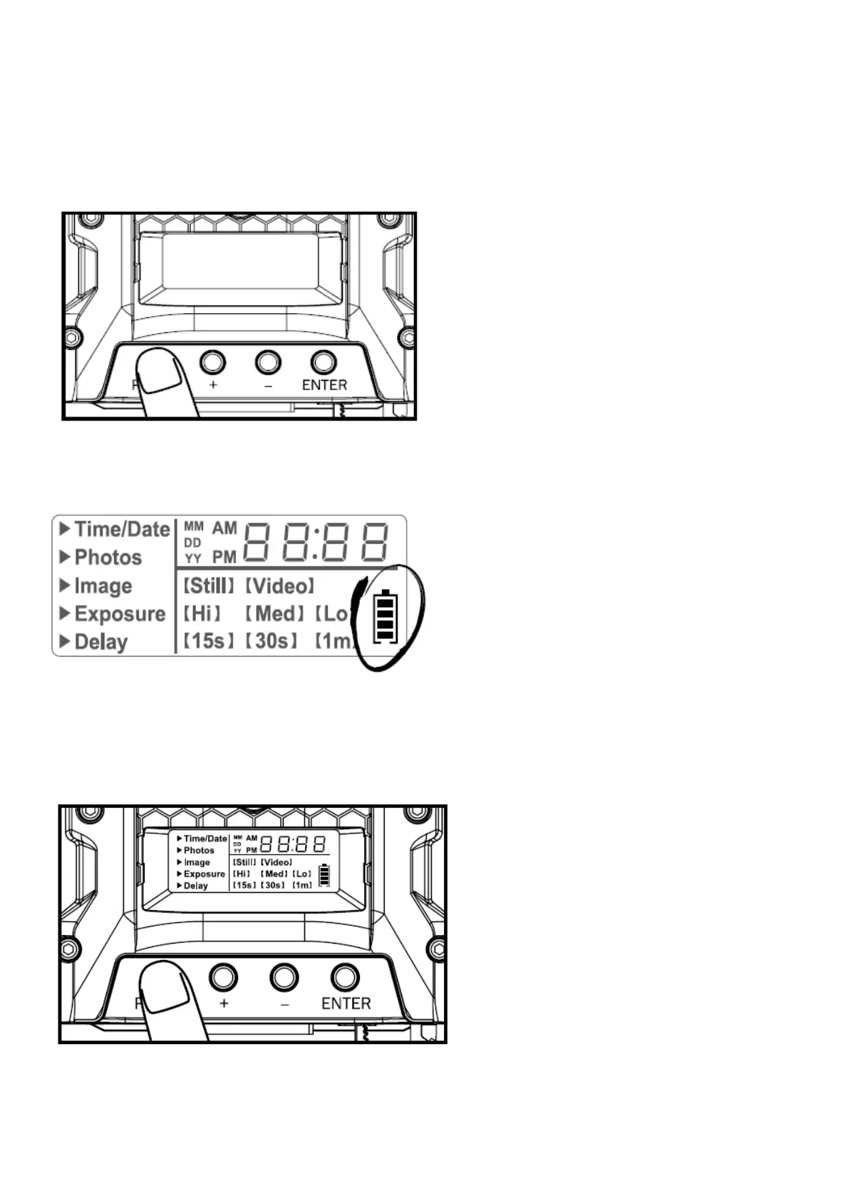 1. After 30 seconds without any buttons being pushed, the LCD will turn off and camera enters into Power Save or