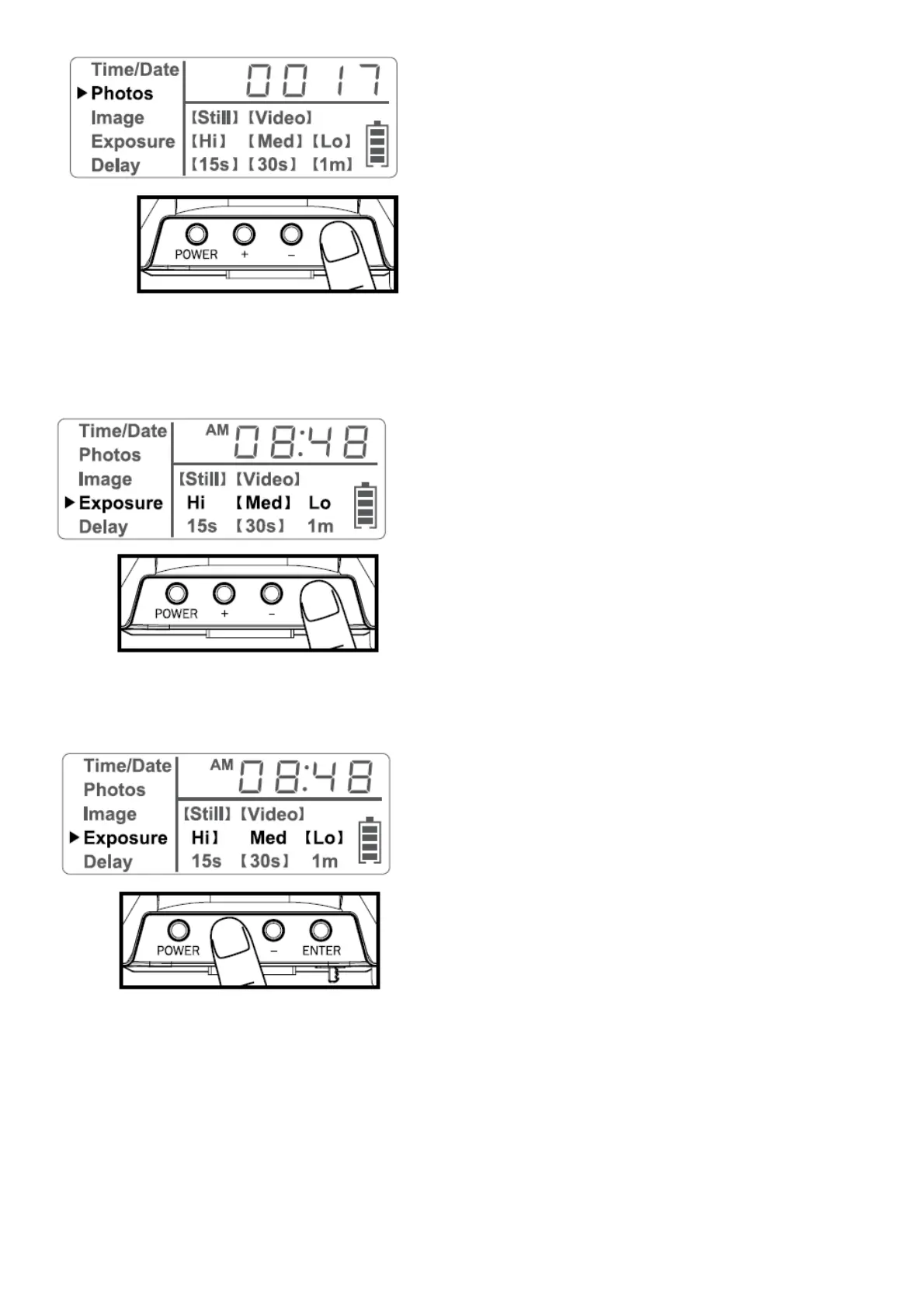 1. Press the Enter navigation button while Exposure is selected. The highlighted option will be blinking.
