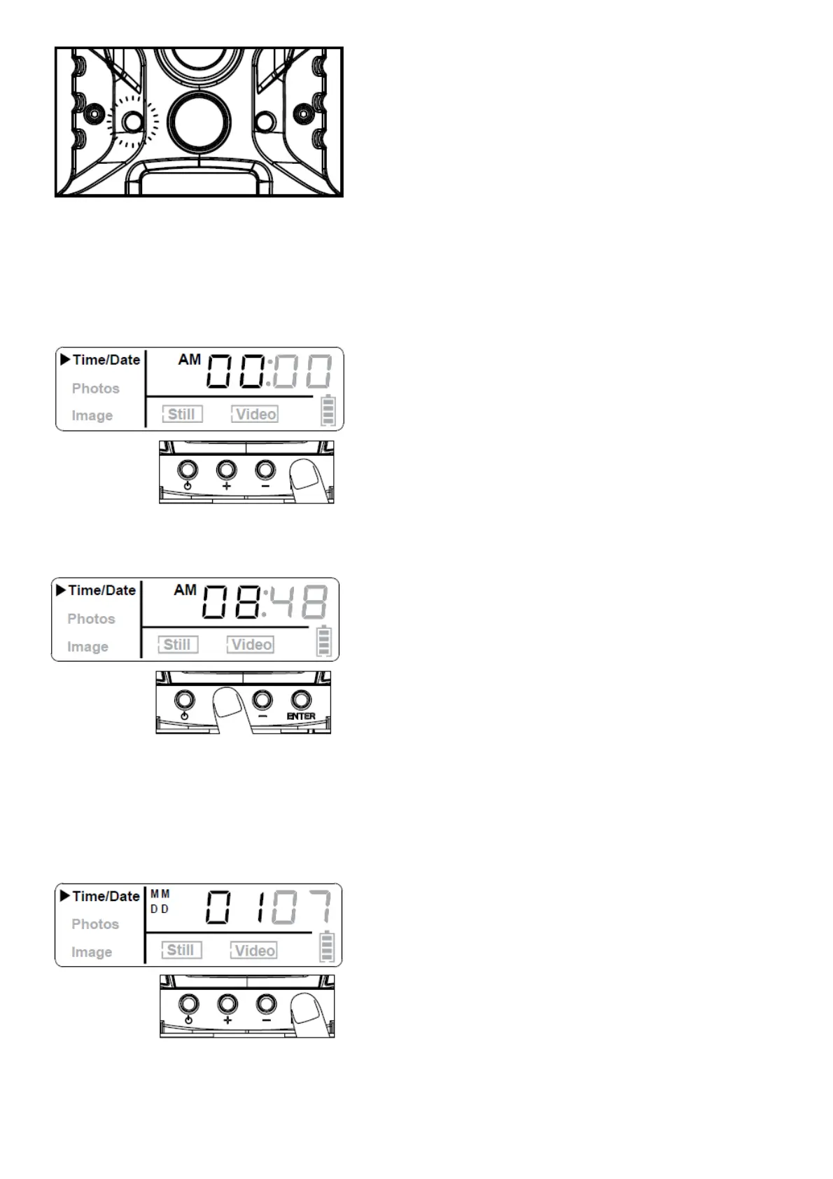 1. To change date and time, start by pressing and releasing the Enter navigation button to set the hour