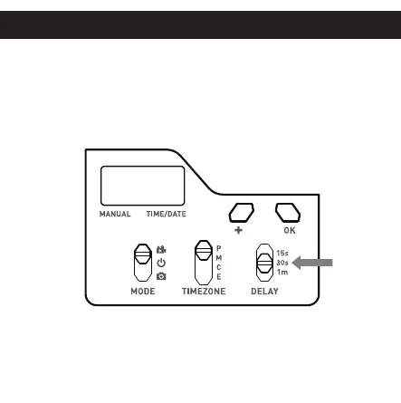 1. Slide the DELAY switch to select your delay setting. 1. Move the MODE switch to Photo or Video mode to turn the camera on.