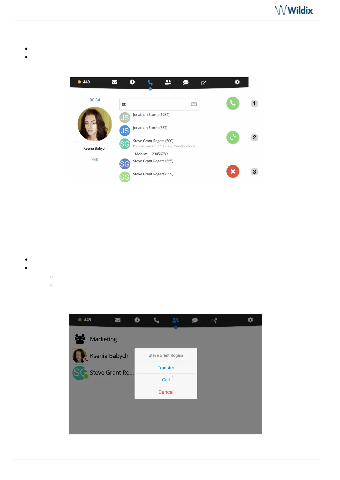 1 – Tap for Attended transfer (call recipient is notified): new call starts, tap button again from Call Transfer