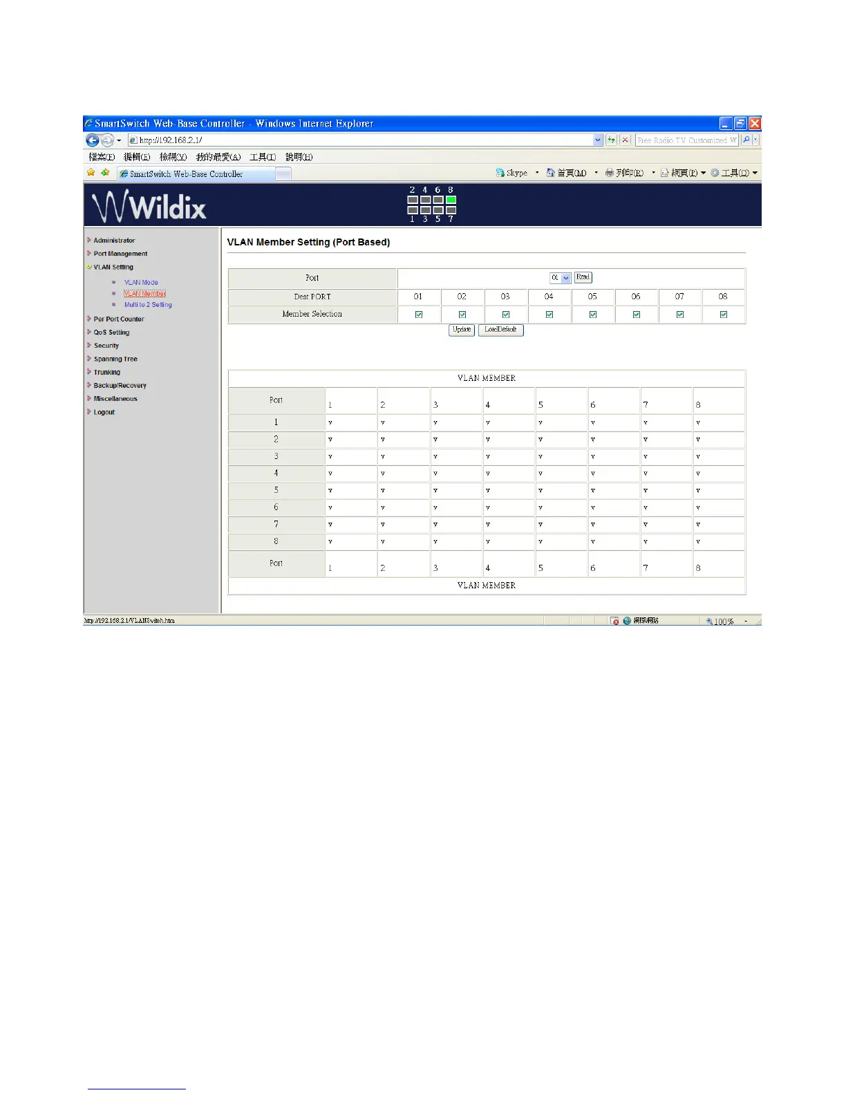 1. Click on the port numbers that you want to put into the selected VLAN group.