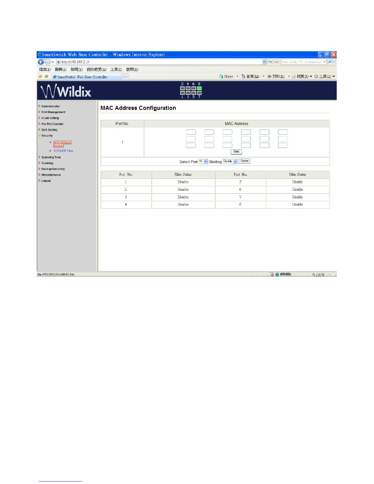 2. “Binding” – “Enable”: allow the packet with the specified source MAC address to enter this