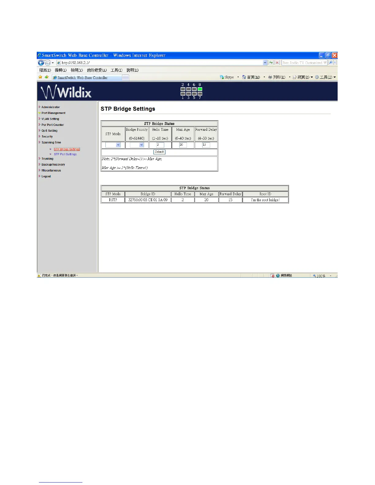 1. Select the “STP Mode”- select “Disable”, “STP” or “RSTP”