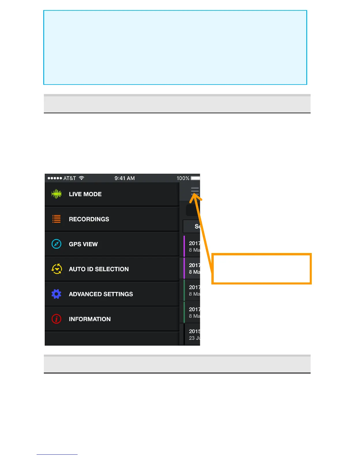 To na vi ga te th rou gh th e a pp, press th e main menu symbol. You