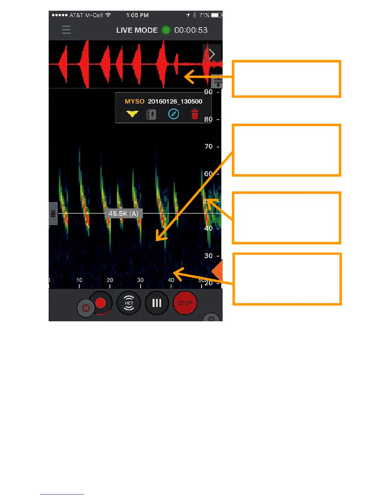 scrolling spectrogram. After scrolling back in time, a “Return to