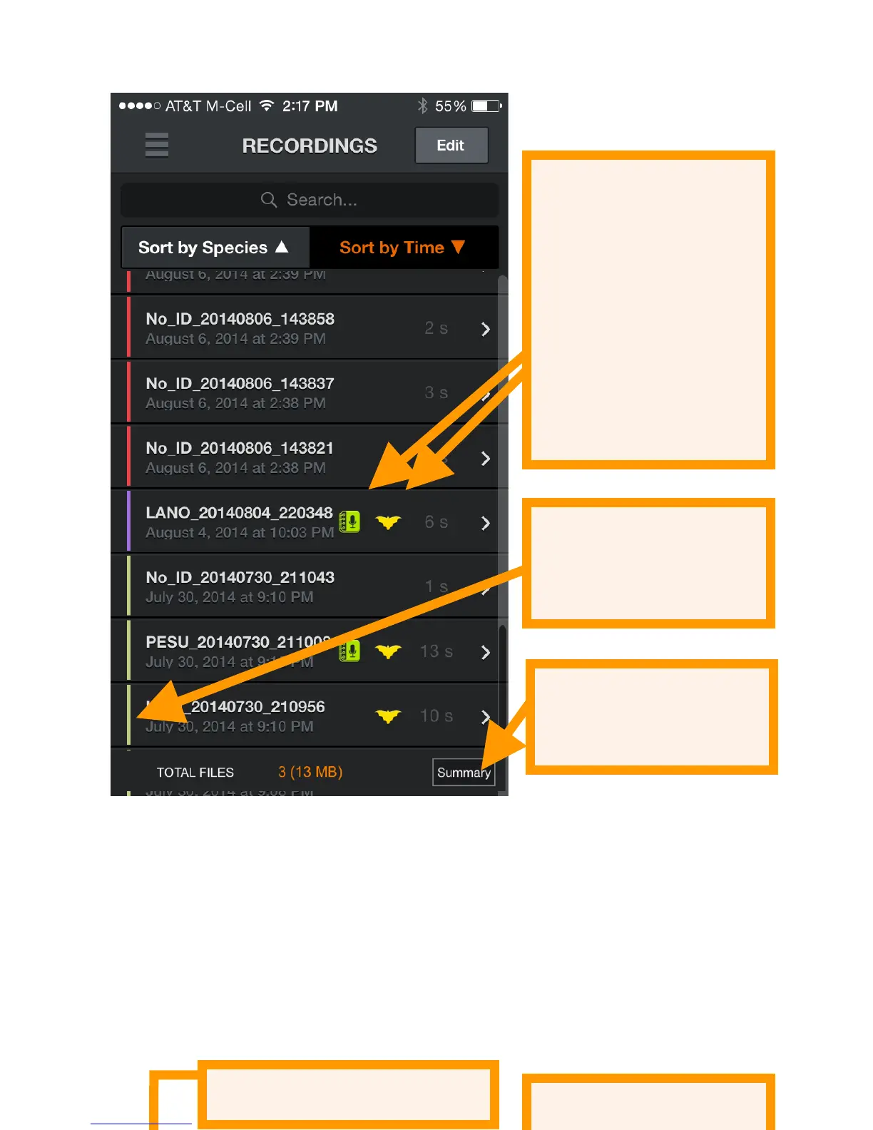 and the NOISE files. This will summarize all recordings if none