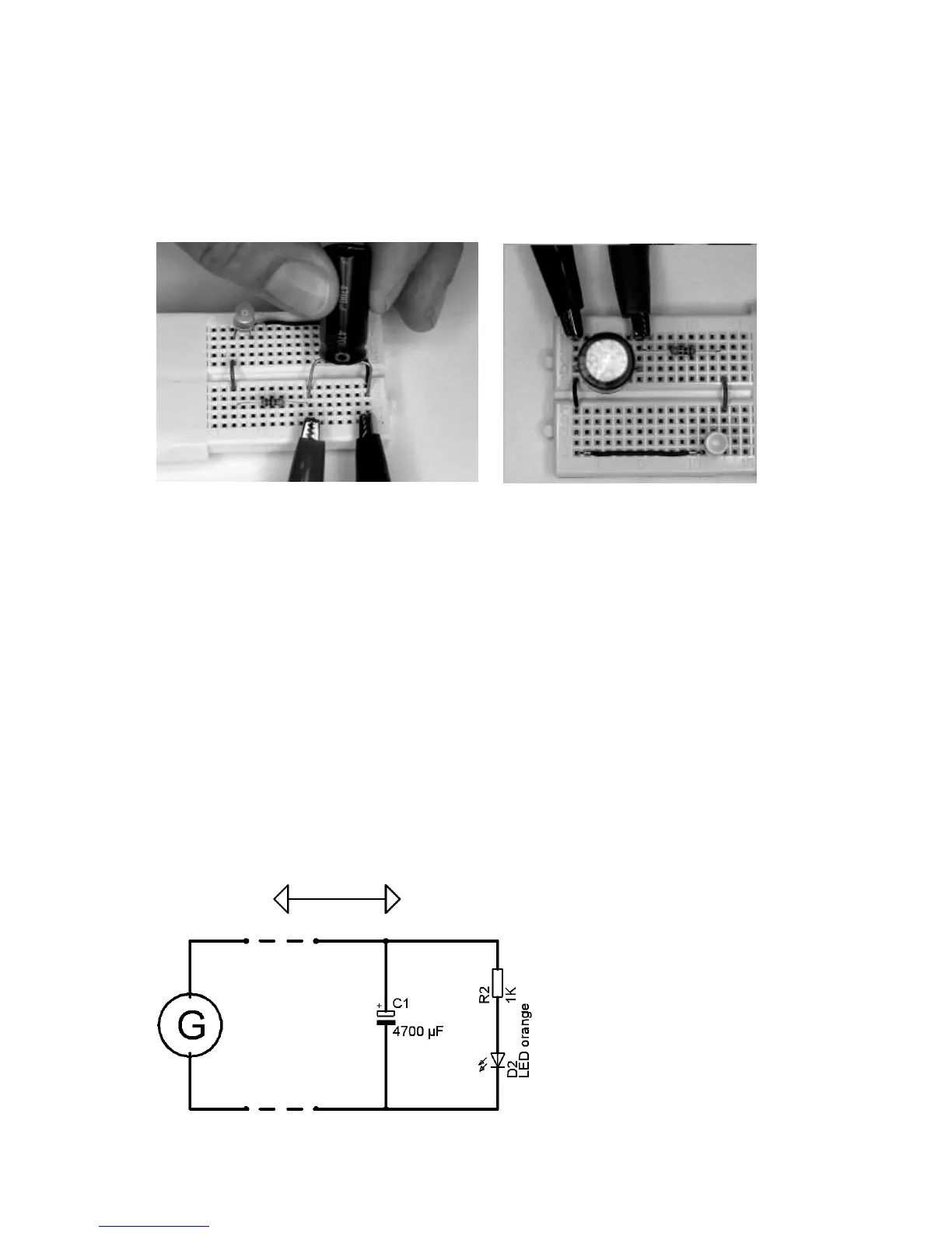 Fig.3.45: a) circuit of charge and b) with one electrolytic and LEDs as