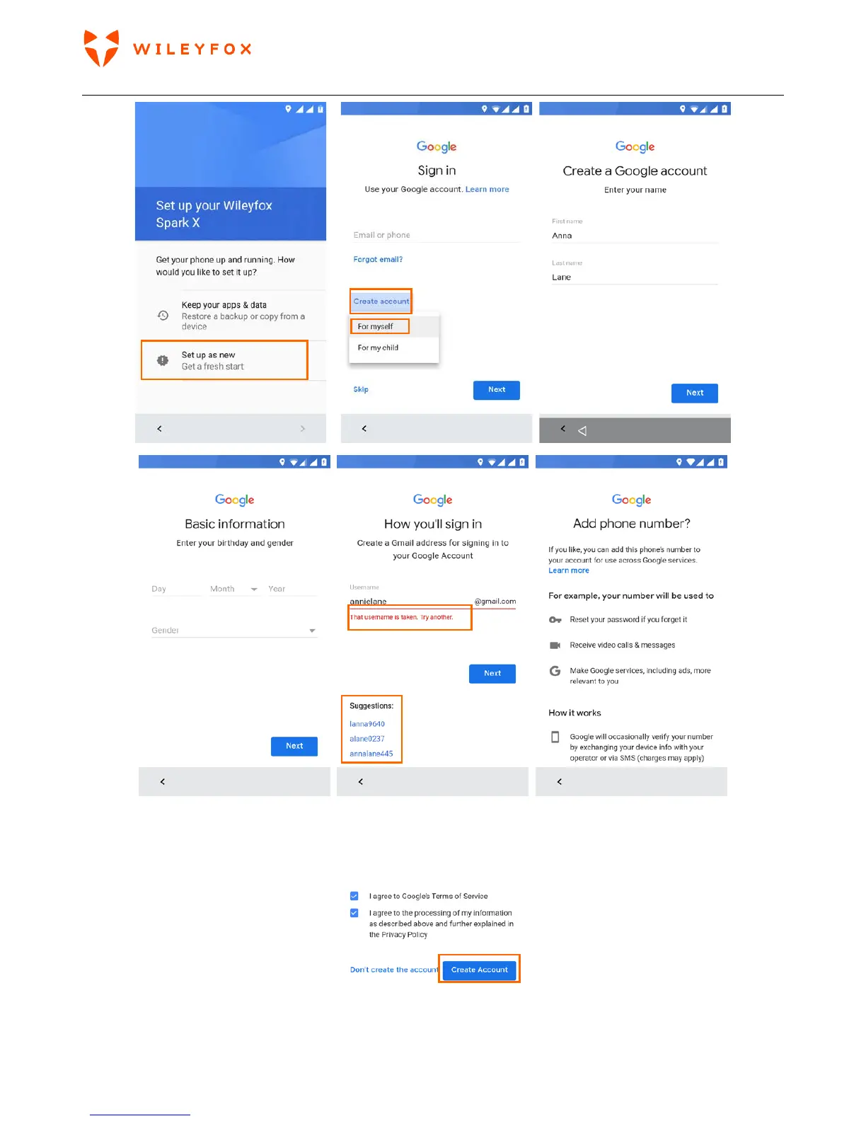 You must agree to Google’s Privacy and terms and then Create your new account.