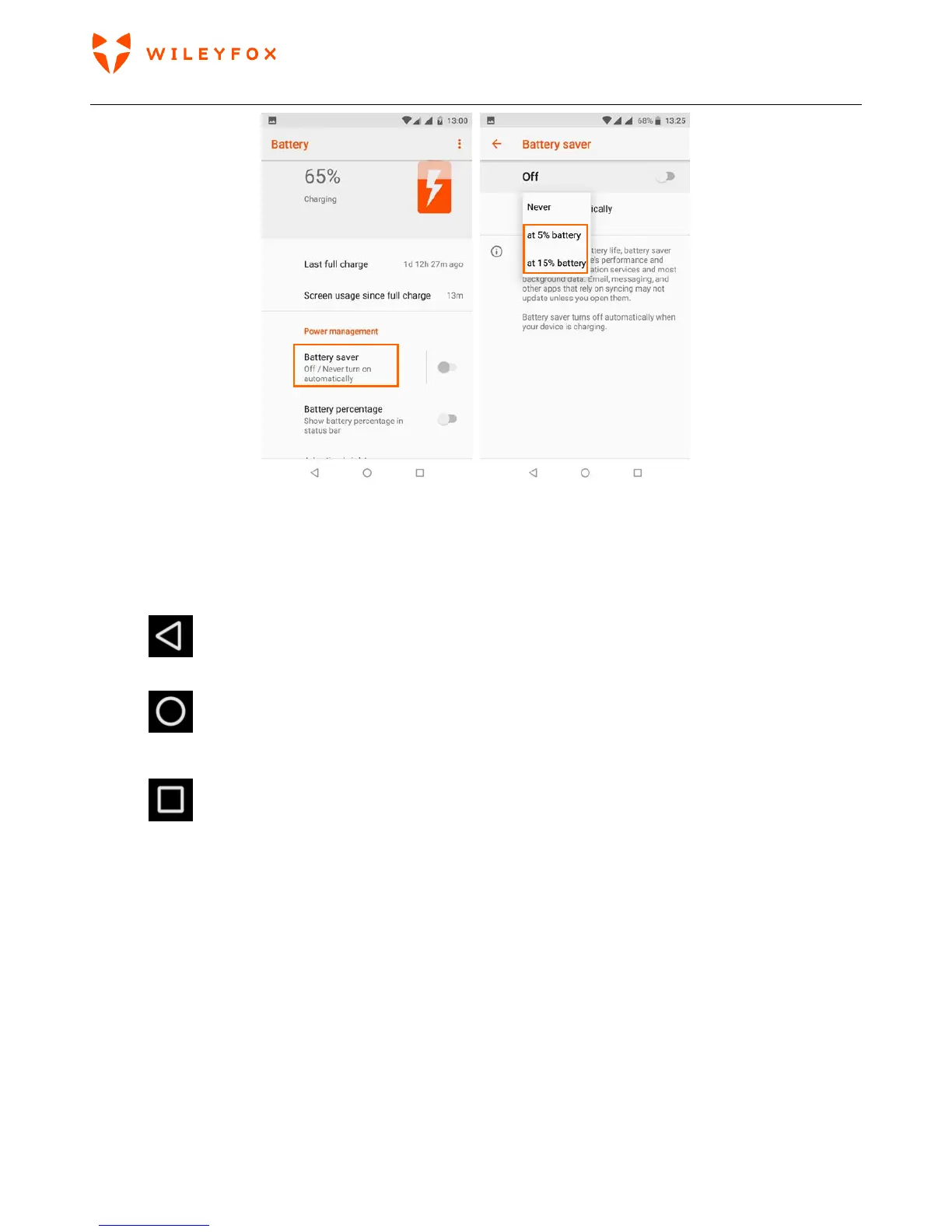 At the bottom of your Wileyfox device’s screen, you’ll find a navigation bar with these three buttons: