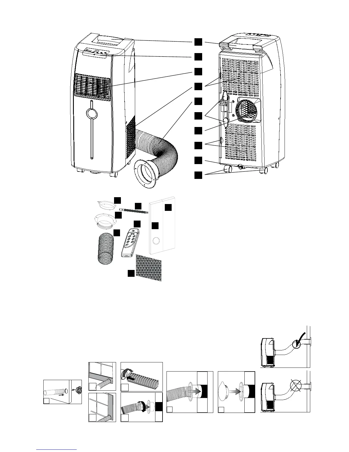 • Klimaanlægget skal placeres lodret og på en jævn overade.
