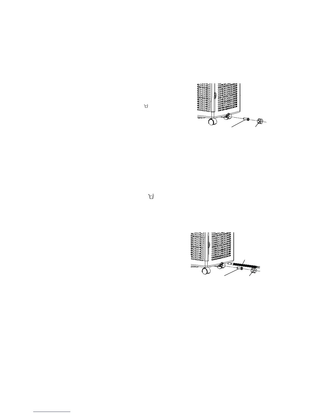 • Fjern gummiproppen, så vandet kan løbe ned i beholderen. Når den er fyldt, sætter du gummi-