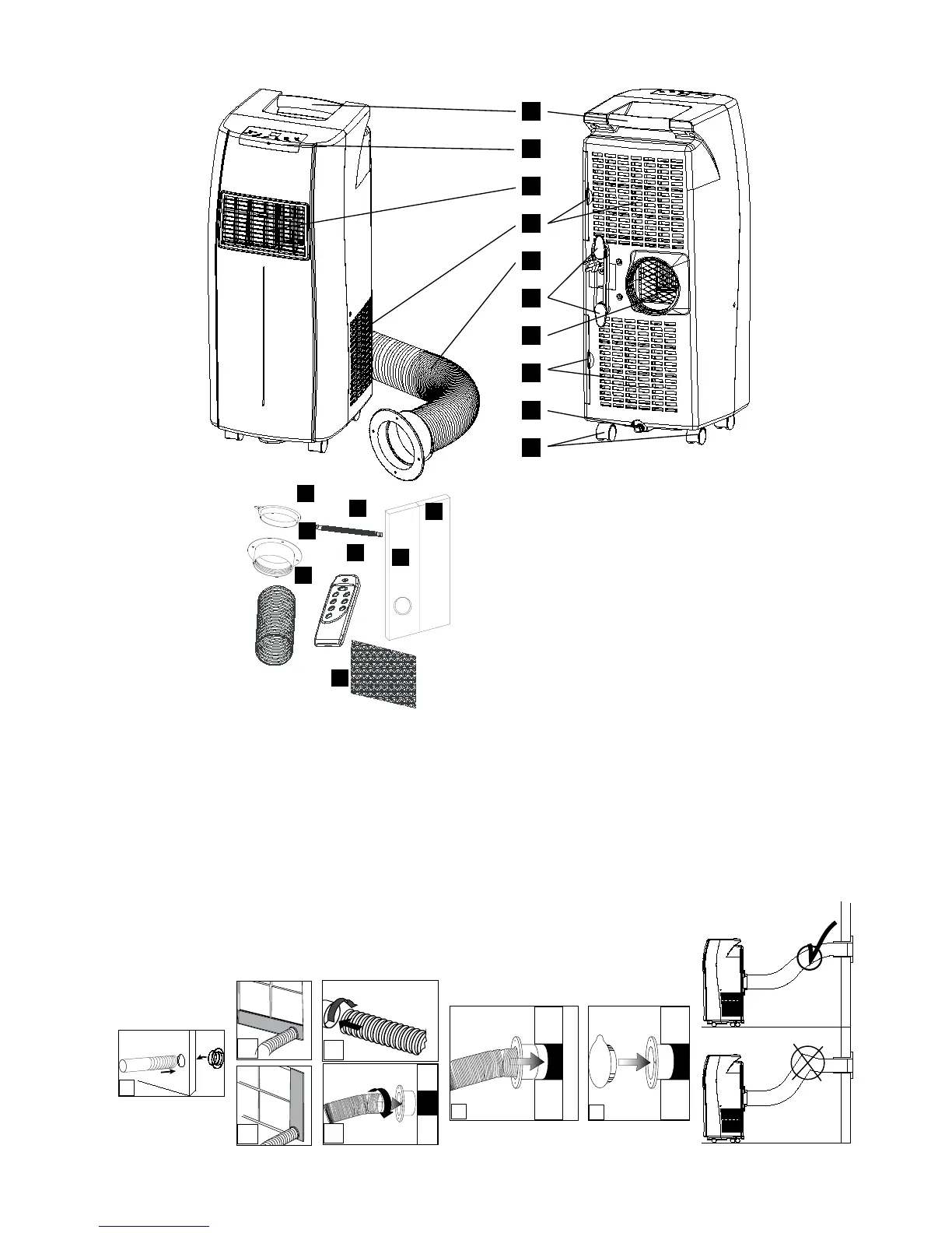 • Klimaanlegget må stå opprett på en jevn overflate.