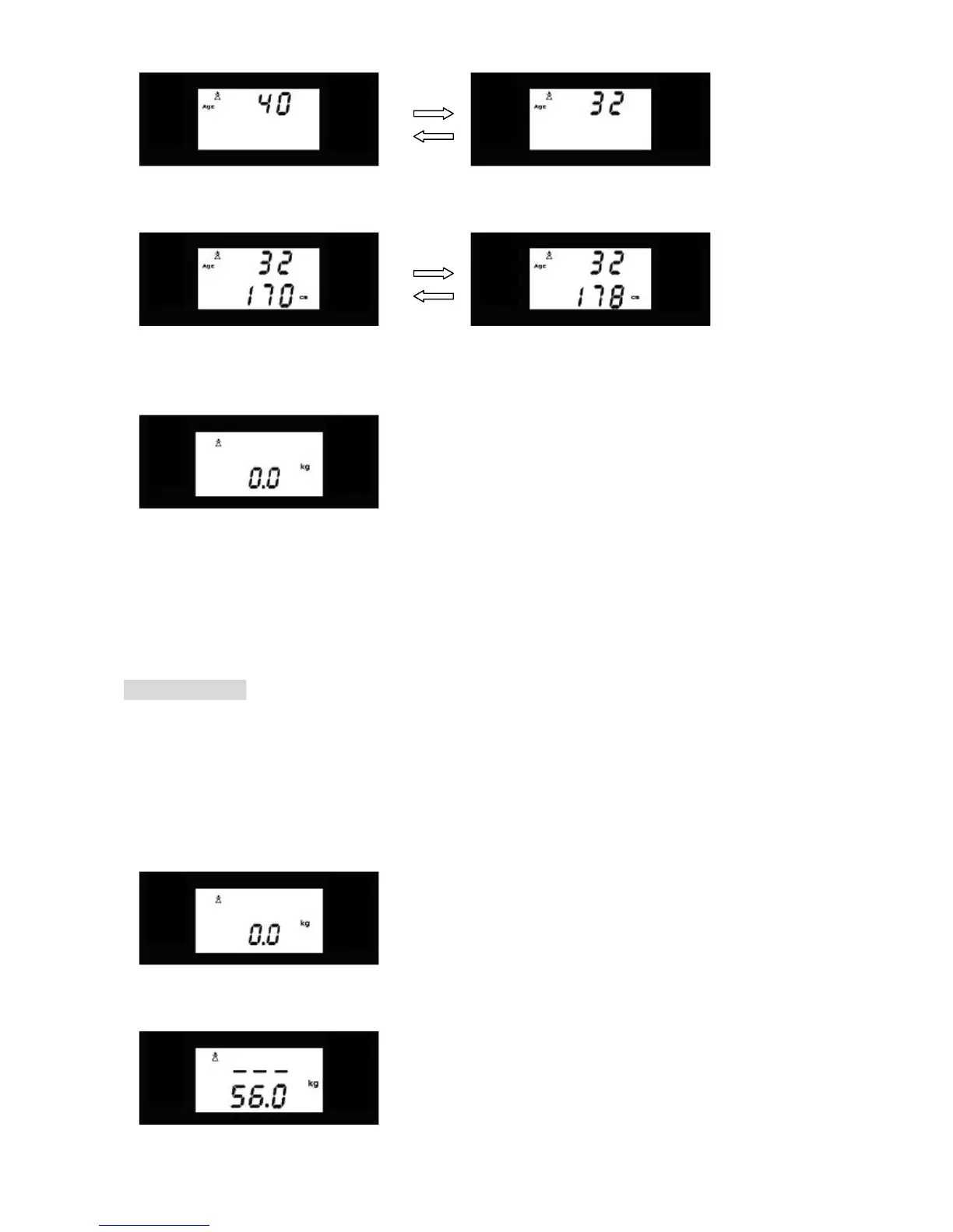 . The values you’ve just set are displayed again consecutively. When the display shows ‘0.0’, step on the scale