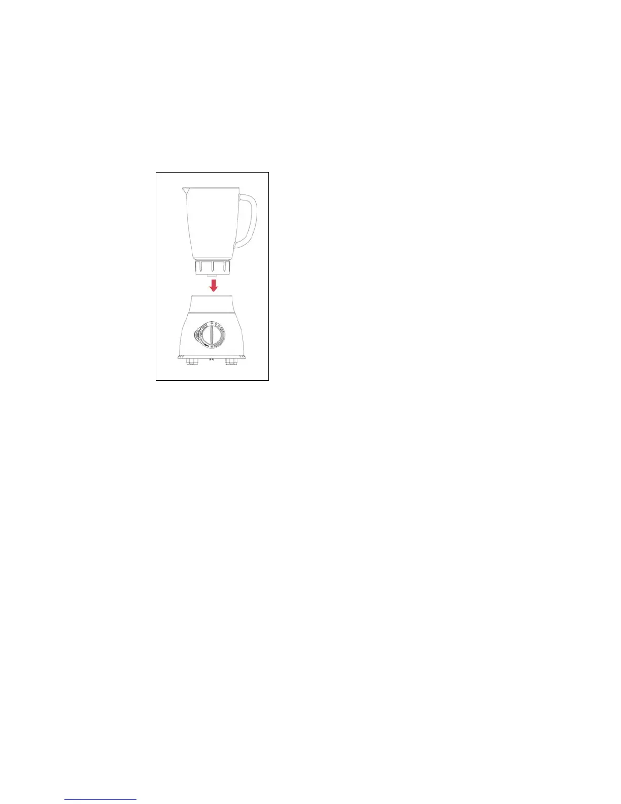 4.Placera glaskannan med de påmonterade knivbladen på motordelen. Handtaget kan placeras i