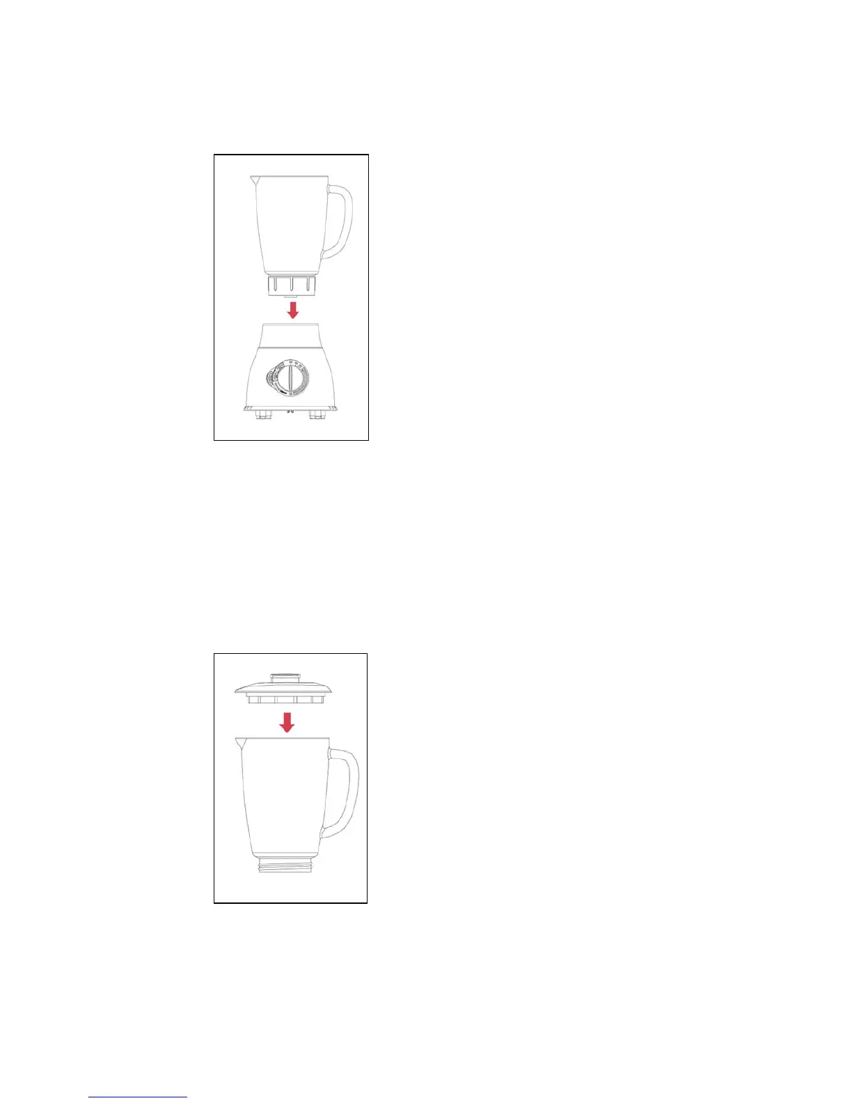 4. Aseta moottoriyksikön päälle lasikannu teräyksikköineen ja yhdyskappaleineen. Kahva voidaan