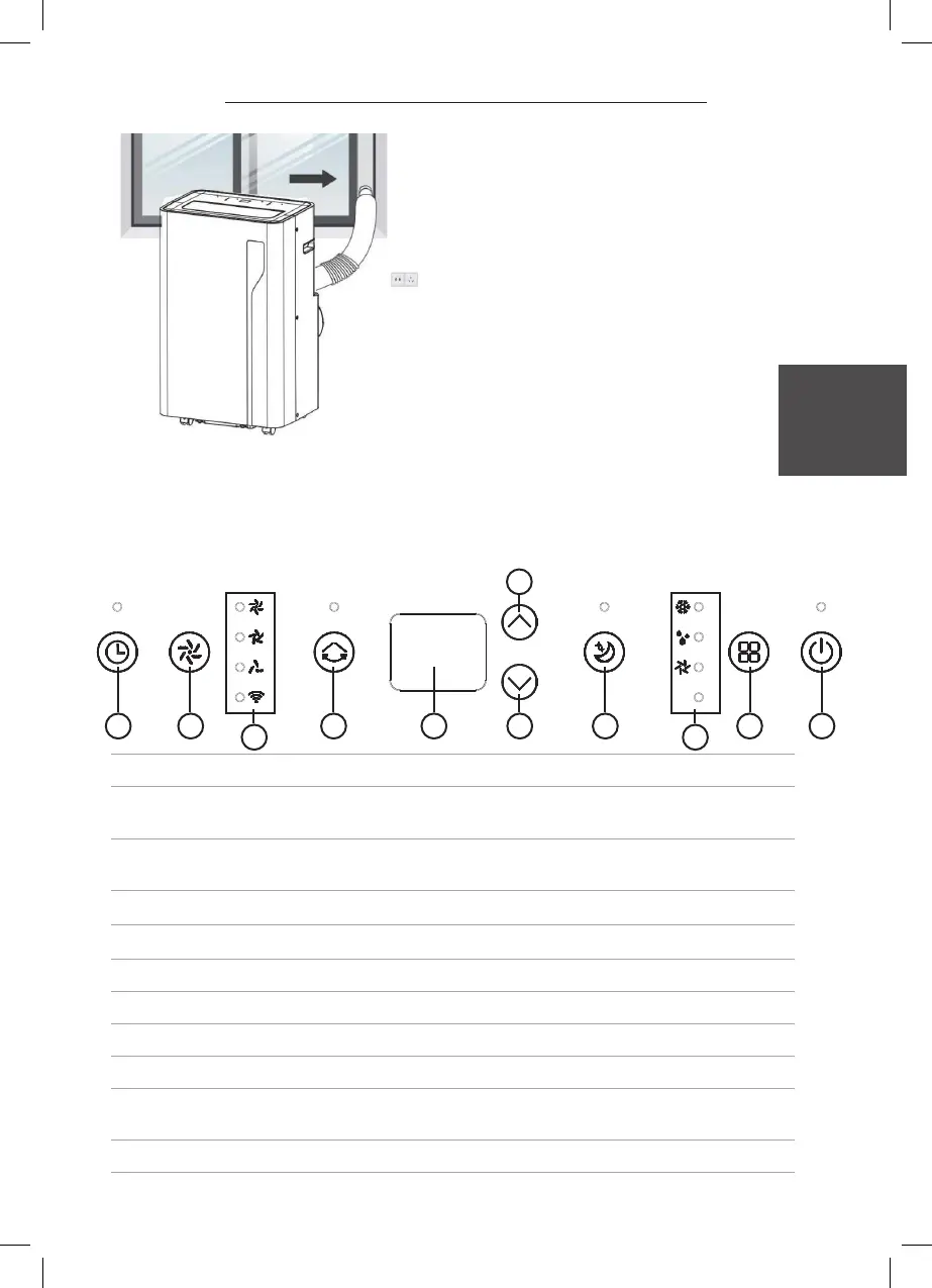 8 SLEEP Tryck på för att gå in i viloläge. Kan endast aktiveras i kylningsläge