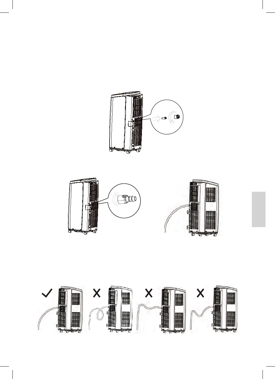 Placing portable on an uneven surface or improper hose installation may result in water filling