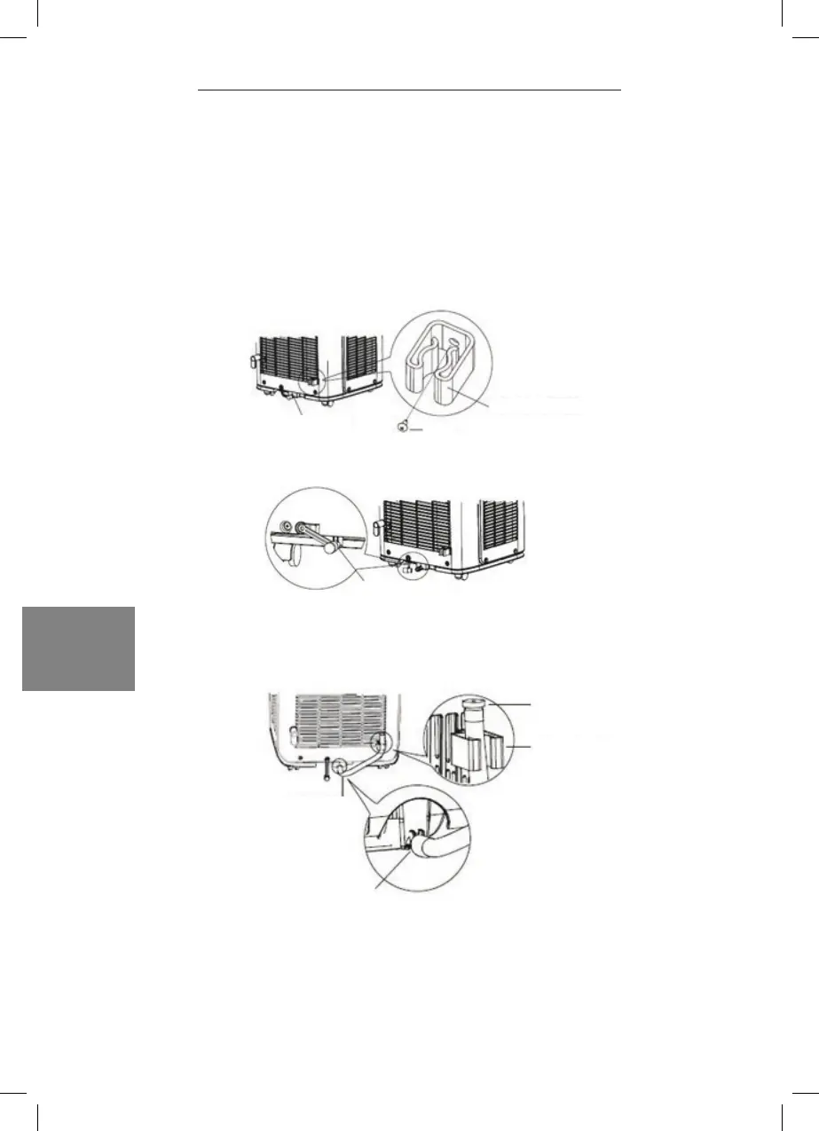 3. Steek de afvoerpijp in de onderste afvoerpoort en schroef hem vast.