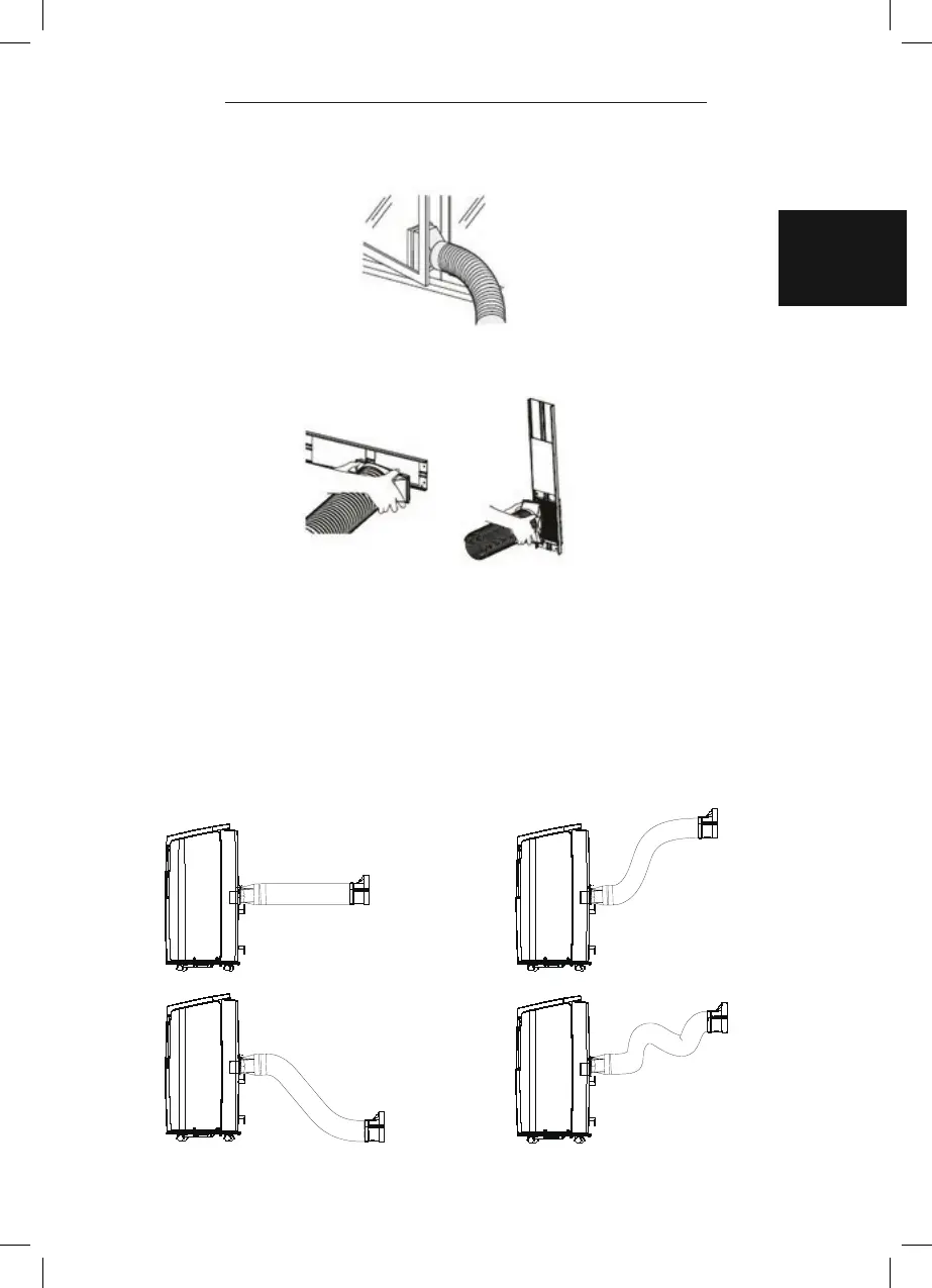 • For å forbedre kjøleeffektiviteten bør varmeutløpsrøret være kort og ligge så