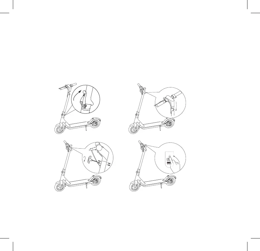 Løft styrstangen op, og lås den med låsemekanismen. Kontroller at kablerne
