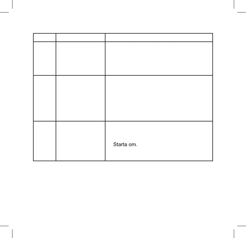 Display Beskrivning av felet Åtgärder