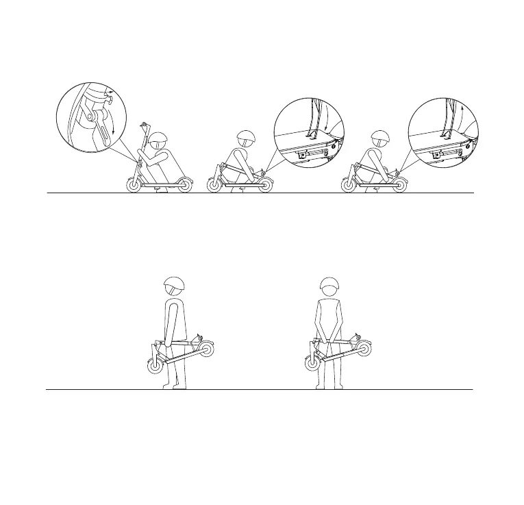 Sørg for, at scooteren er slukket. For at folde skal du låse foldemekanismen