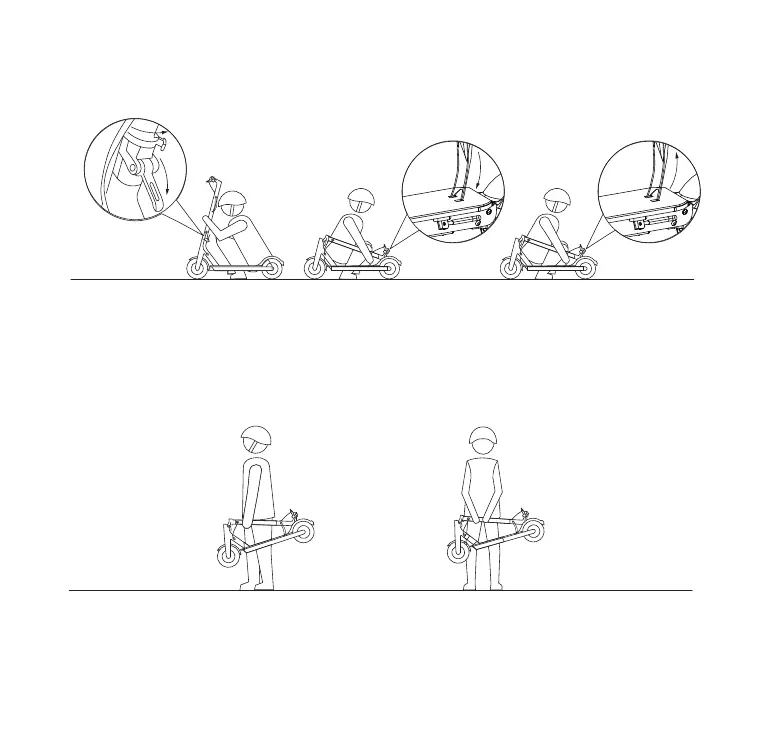 Varmista, että sähköpotkulaudan virta on sammutettu. Taita potkulauta