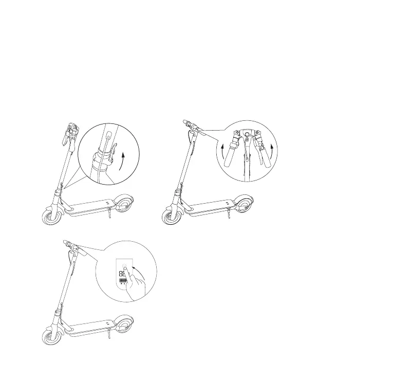 1. Räta ut styrstången och fäst fällmekanismen genom att lyfta