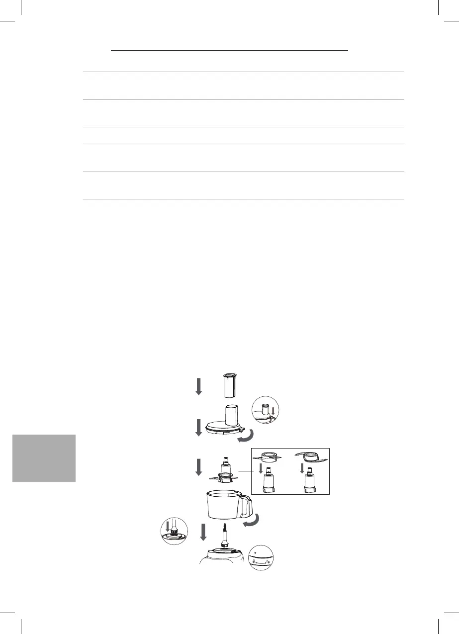 • Ne pas utiliser le robot culinaire plus de 2 minutes d’aflée. Débrancher