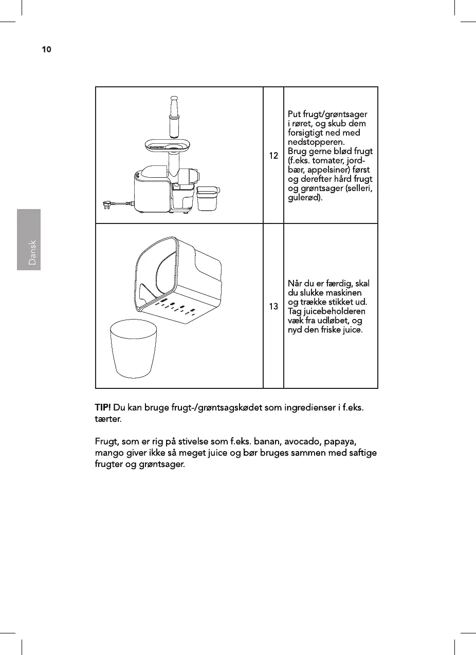 TIP! Du kan bruge frugt-/grøntsagskødet som ingredienser i f.eks.