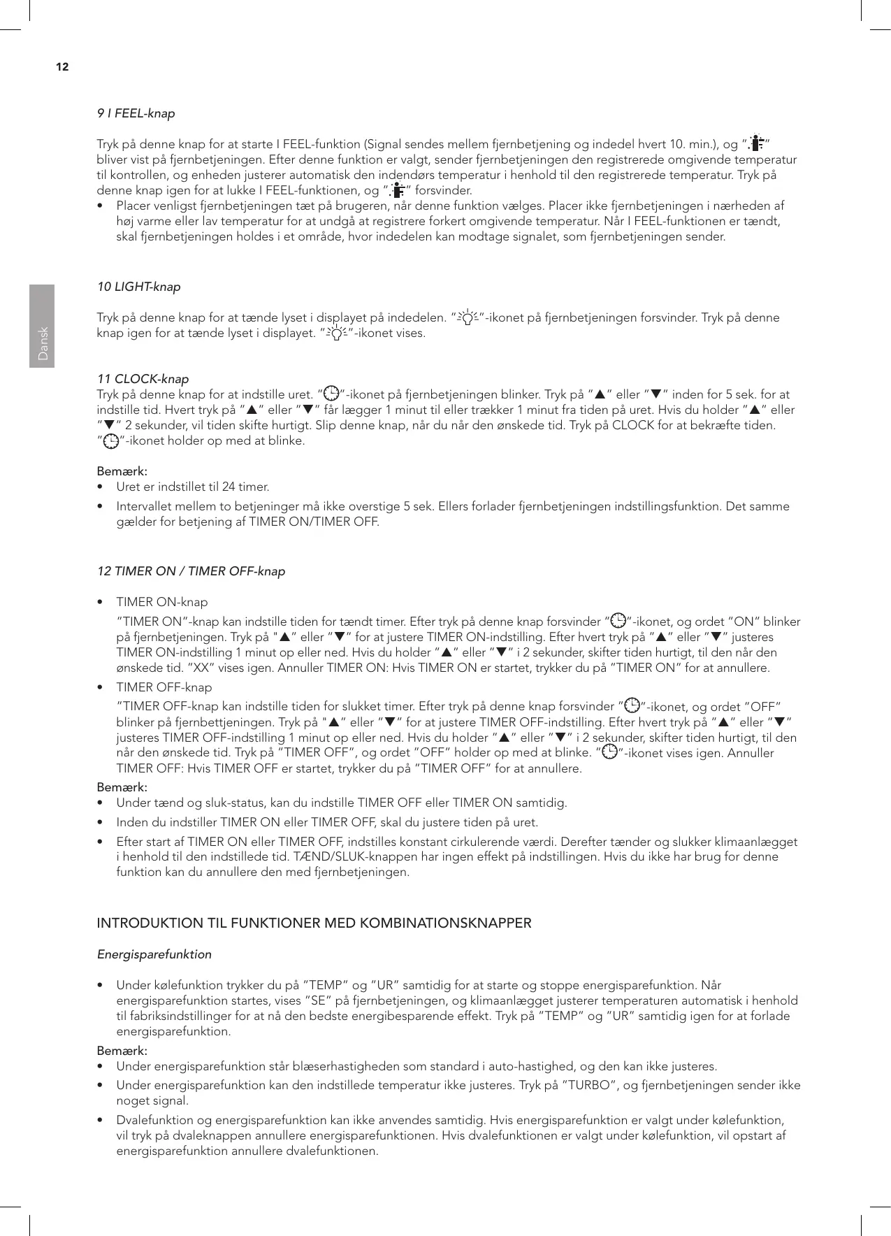 Tryk på denne knap for at starte I FEEL-funktion (Signal sendes mellem fjernbetjening og indedel hvert 10. min.), og ”