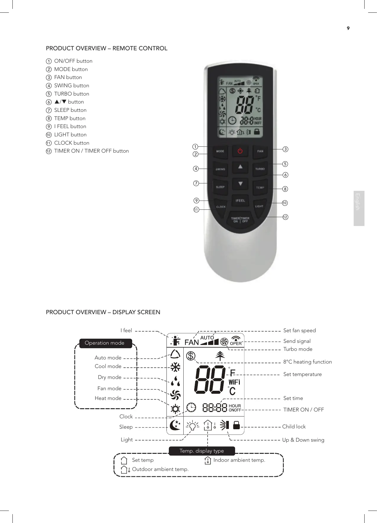 Wilfa Lillehammer 9 - PRODUCT OVERVIEW - REMOTE CONTROL; PRODUCT OVERVIEW - DISPLAY SCREEN