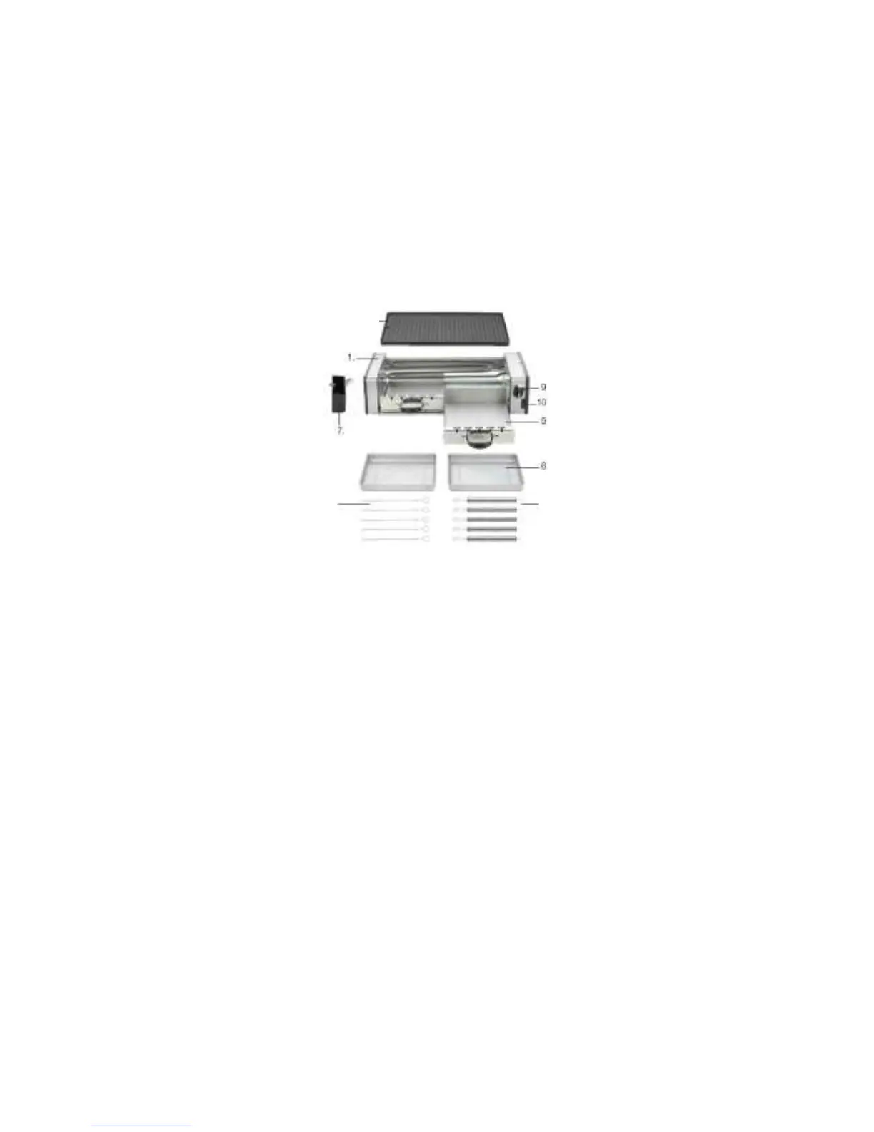 6. Två droppskydd: Samlar upp fett från roterande grillspett.