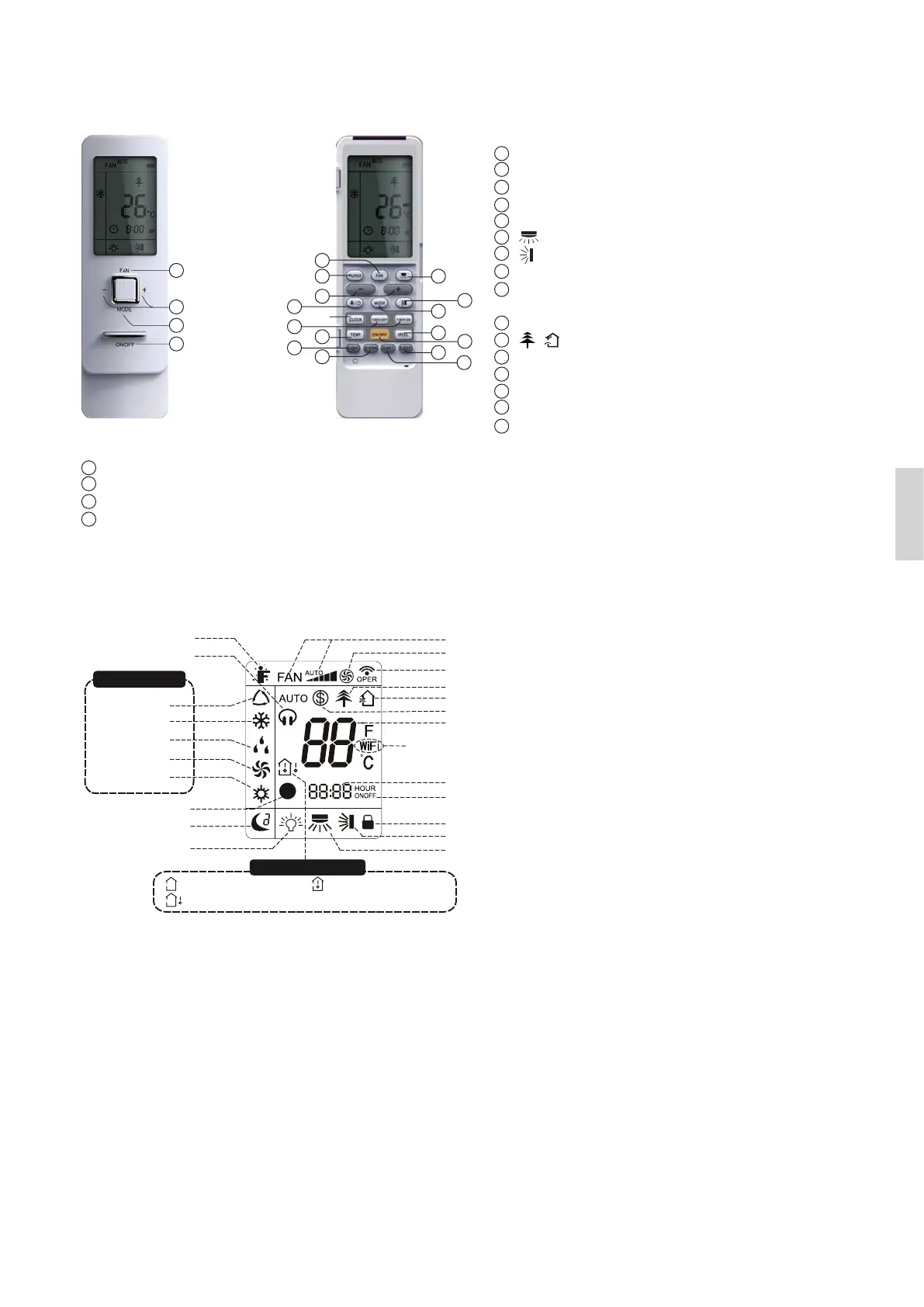 Wilfa Narvik 25 - Buttons on Remote Controller; Introduction for Icons on Display Screen