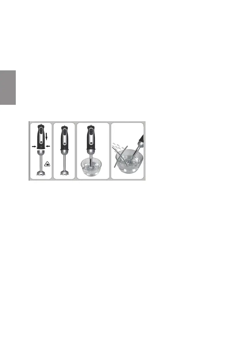 1. Vrid fast mixerstaven i plast eller rostfritt stål på motordelen tills den låses på plats.