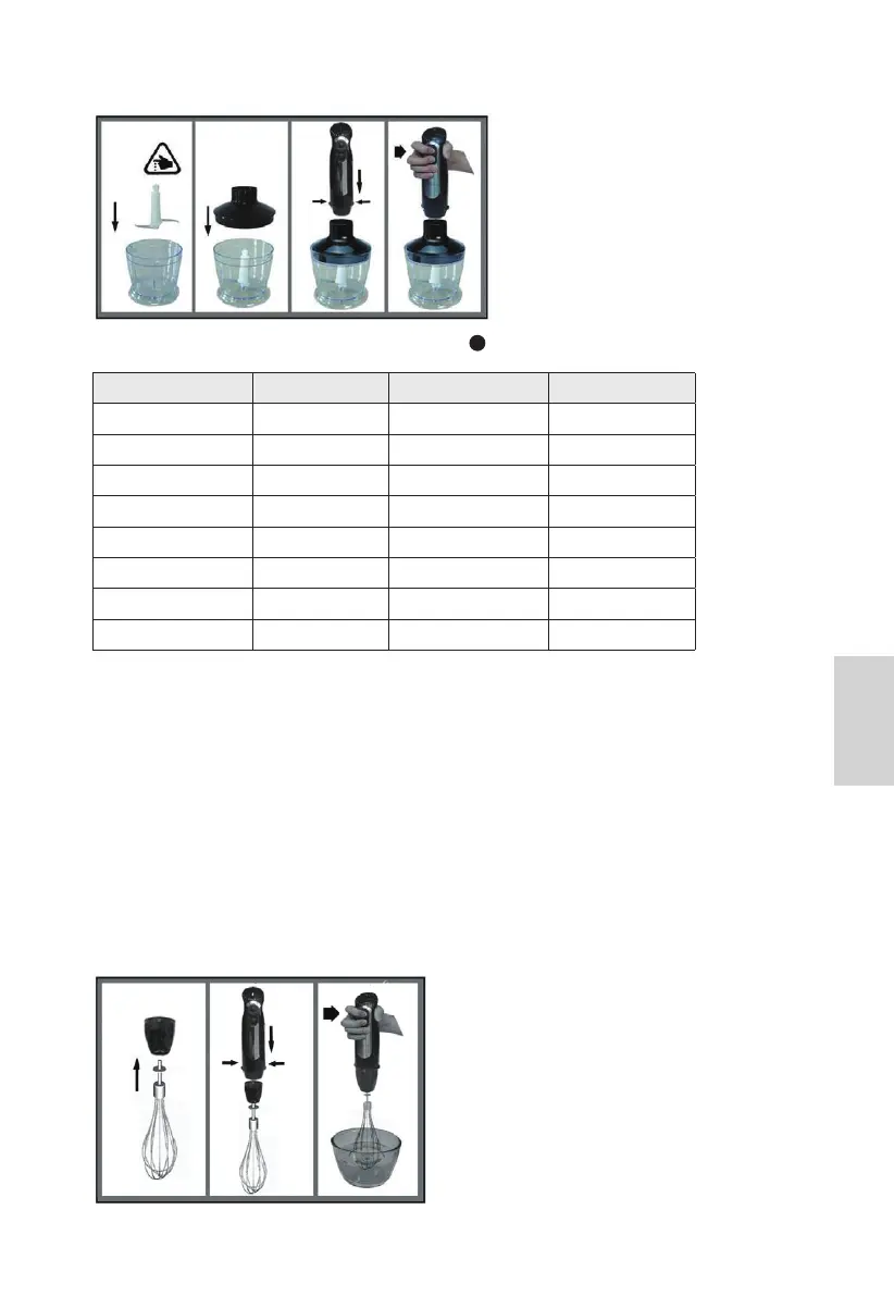2. Place the whisk in a vessel and only then. Choose speed “1”-“5” and press the switch